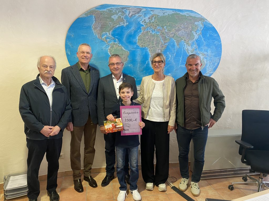 Hannes Brenner freut sich über den Hauptpreis, einen Reisegutschein im Wert von 3500 Euro, den er stellvertretend für seinen Opa Siggi Conradt, der nicht persönlich anwesend sein konnte, entgegen nahm: „Am Tegernsee war ich schon sehr oft mit meinem Opa, da wollen wir wieder gemeinsam in den Ferien hinfahren“. Man konnte ihm die Freude regelrecht vom Gesicht ablesen, wie man auf dem Foto unschwer erkennen kann.